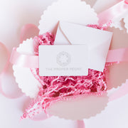 Gift cards are packaged with care and shipped in a gift box to you OR your recipient, tied with a satin bow! Our gift cards have no additional processing fees. Gift cards may be redeemed online at www.theproperpeony.com and have no expiration date! You may add a gift note when confirming your cart, and you may indicate your ribbon color if different than as pictured (pink, blue and ecru available)!