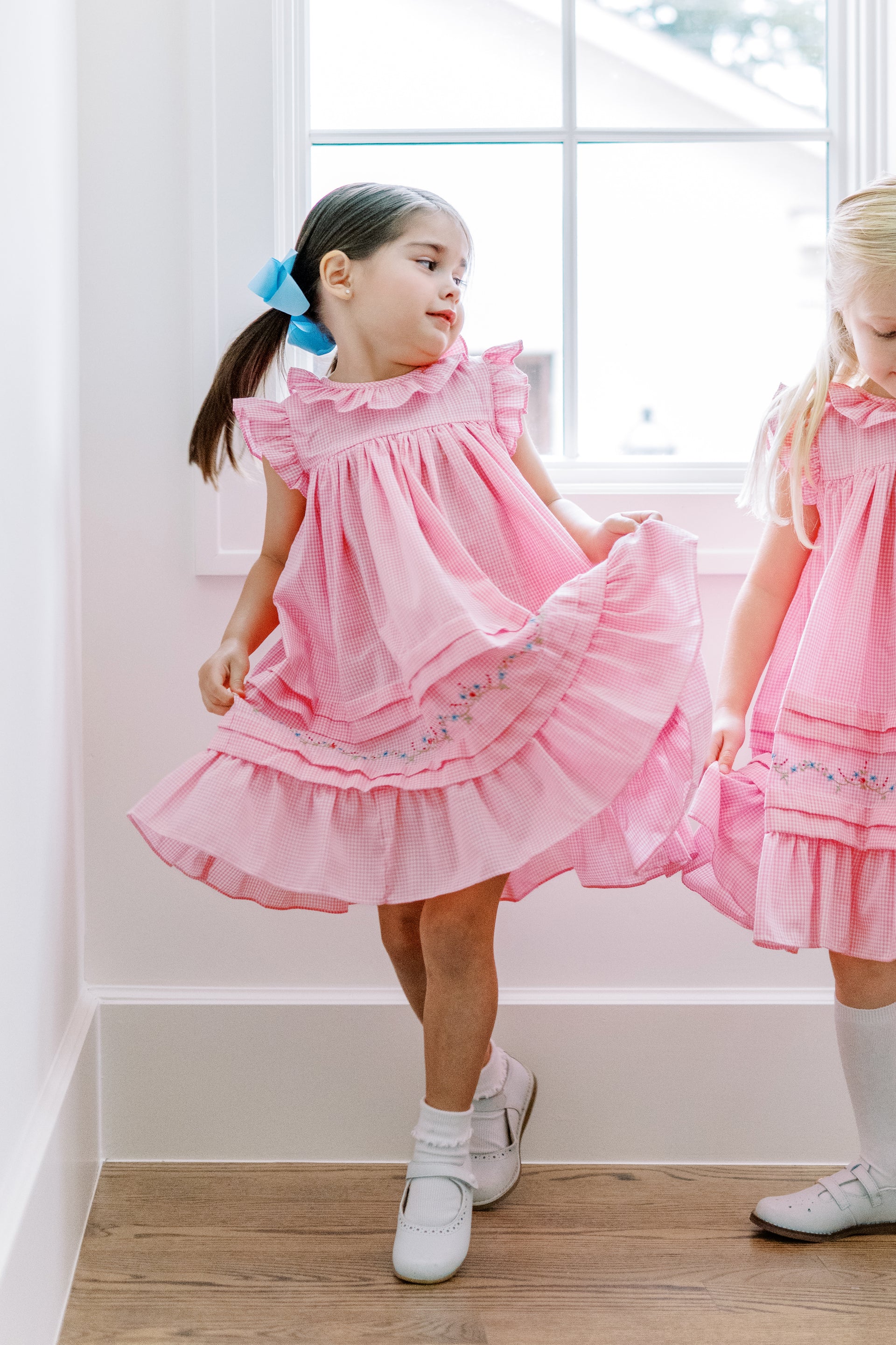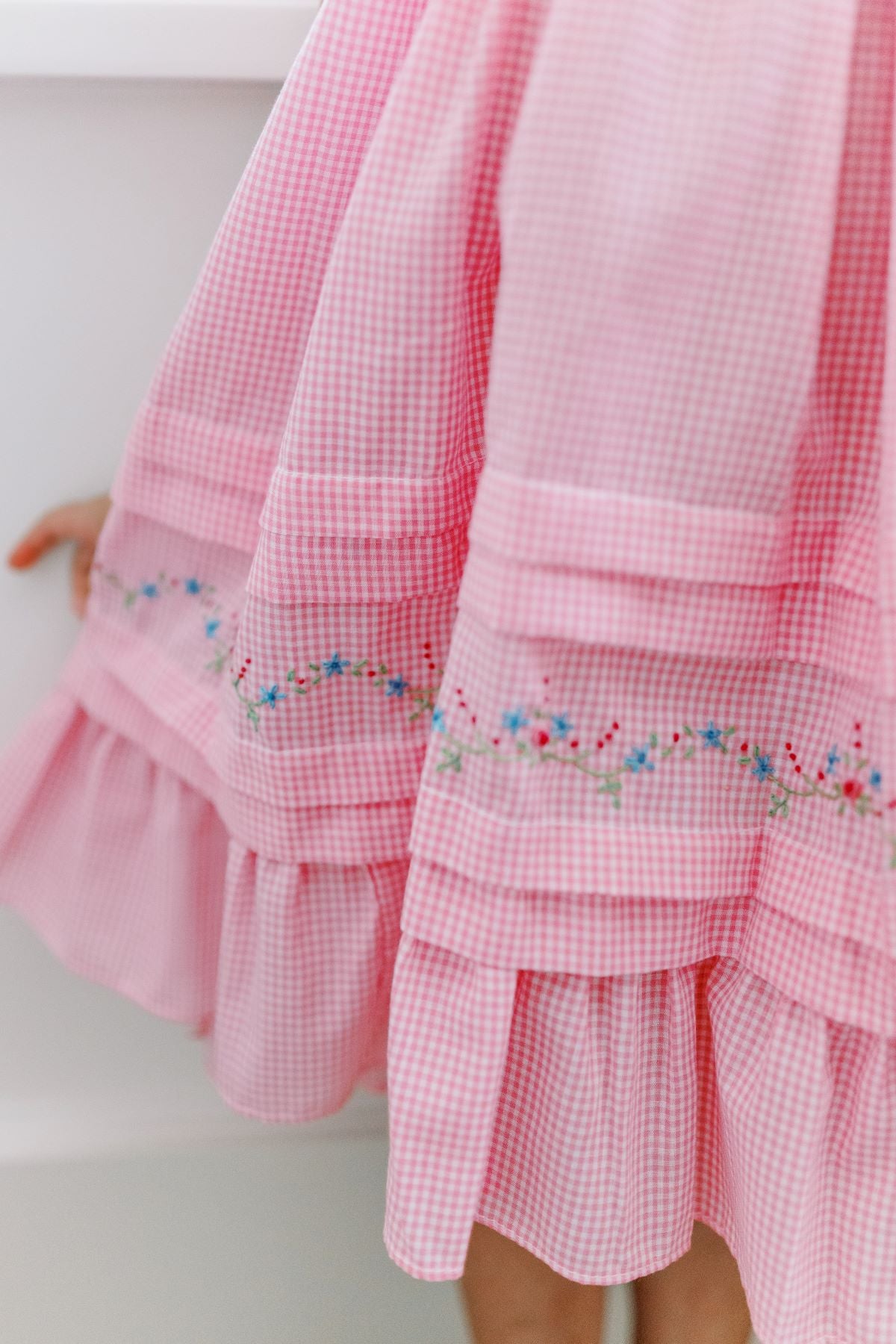 The Sylvie Pink Gingham Willow is a twirling sensation and darling on all ages. With our traditional hand-embroidery all around the hem, the Willow is a Proper Peony classic!
